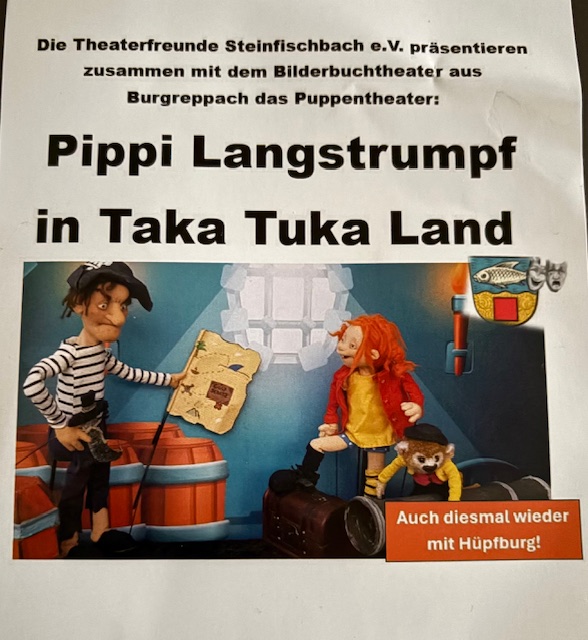 Nach dem überaus erfolgreichen ersten „Gastspiel“ des Puppentheaters Burgreppach bei den Theaterfreunden im April des vergangenen Jahres freuen wir uns sehr auf die zweite Aufführung „Pippi Langstrumpf im Taka-Tuka-Land“. Auch dieses Jahr erwarten die kleinen und großen Gäste wiederum ein Kuchenbuffet, Popcorn, warme Würstchen und Brötchen.